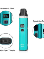 OXVA Xlim Pod System Kit, made of Aluminum alloy & PCTG, is the most all-around pod for X-treme flavor and strong throat hit. OXVA Xlim Pod Kit works with 900mah battery and reaches up to 25W output. OXVA Xlim adopts 0.42 inch OLED Mini Screen and Auto-draw & Manual ignition. Xlim Pod System supports side airflow control design. OXVA Xlim has 2ml anti-leaking pod with top filling design.